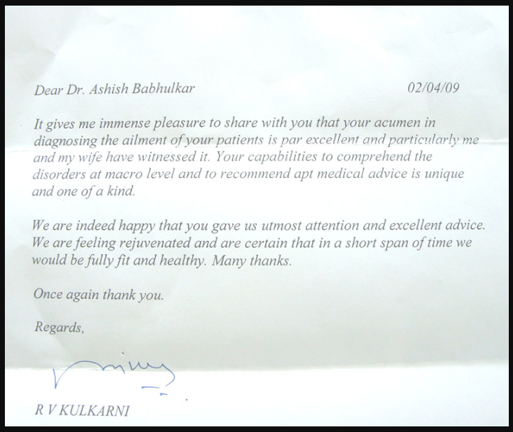 I met with an accident and had a bad ligament tear .It was very painful and walking too was awkward. It was then we consulted our family doctor and he recommended Dr. Babhulkar's name.